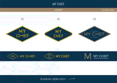 Logo design for My Chef, a restaurant-focused brand. The project aimed to create a clean, modern, and memorable visual identity that reflects culinary professionalism while remaining versatile for use across menus, signage, packaging, and digital platforms.