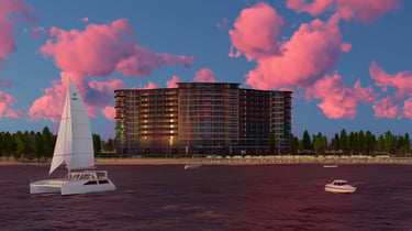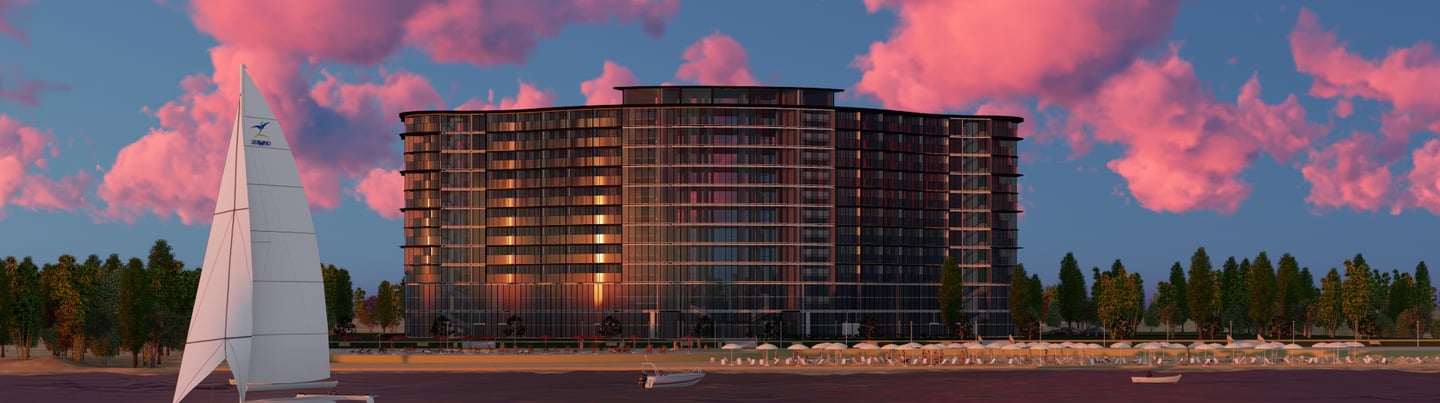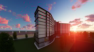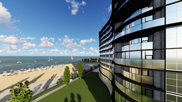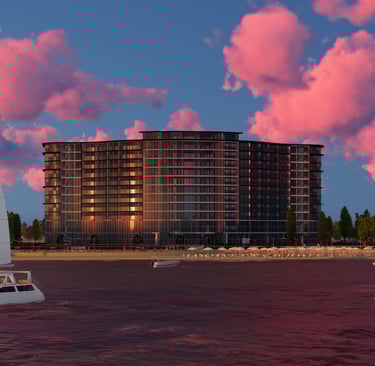 Architecture and design project for a seaside hotel, developed with a focus on spatial openness, natural light, and the relationship between interior spaces and the coastal environment. The concept emphasizes clear circulation, functional planning, and material choices that enhance the seaside atmosphere.