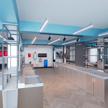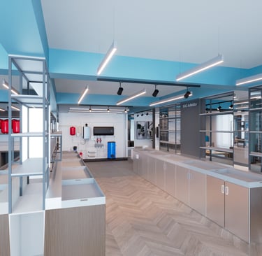 We designed and planned the interior for Thermona Azerbaijan, creating a space that seamlessly combines a showroom, retail store, and storage area. Products are organized into dedicated zones, showcasing a wide range of sanitary equipment, including official Czech-made boilers. The design ensures a clean, functional, and visually appealing environment for both customers and staff, balancing display, usability, and storage needs.